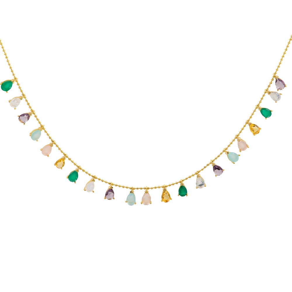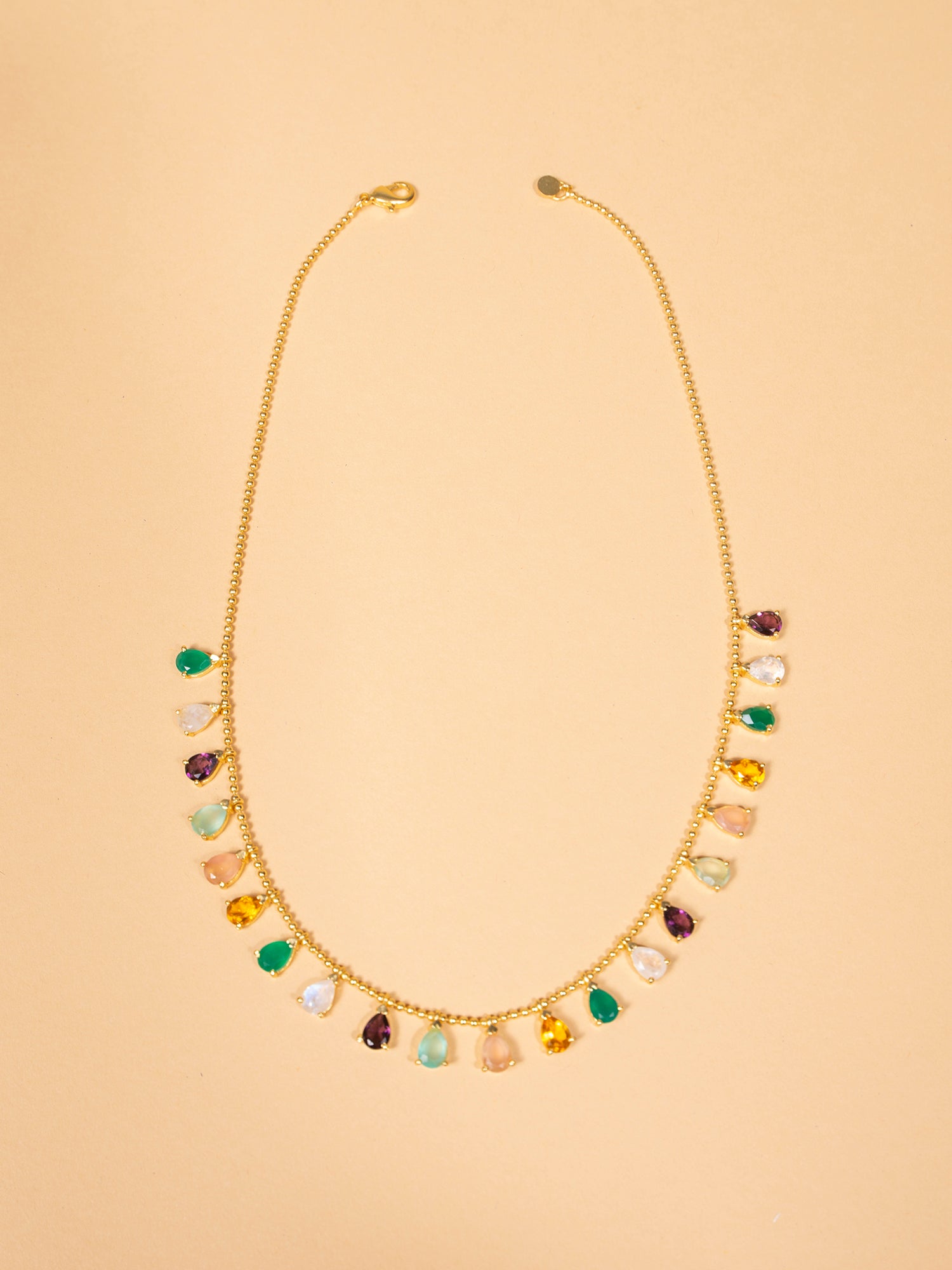 The Lavani Jewels collar necklace is made in Valencia, Spain from 21 natural stones sourced from family-run establishments around the world. The collar style necklace will perfectly finish a casual outfit or will add a pop of fun to a dress-up ensemble. Designed to be sculptural and unique but fundamentally timeless the necklace moves with the wearer with style, strength, and beauty.