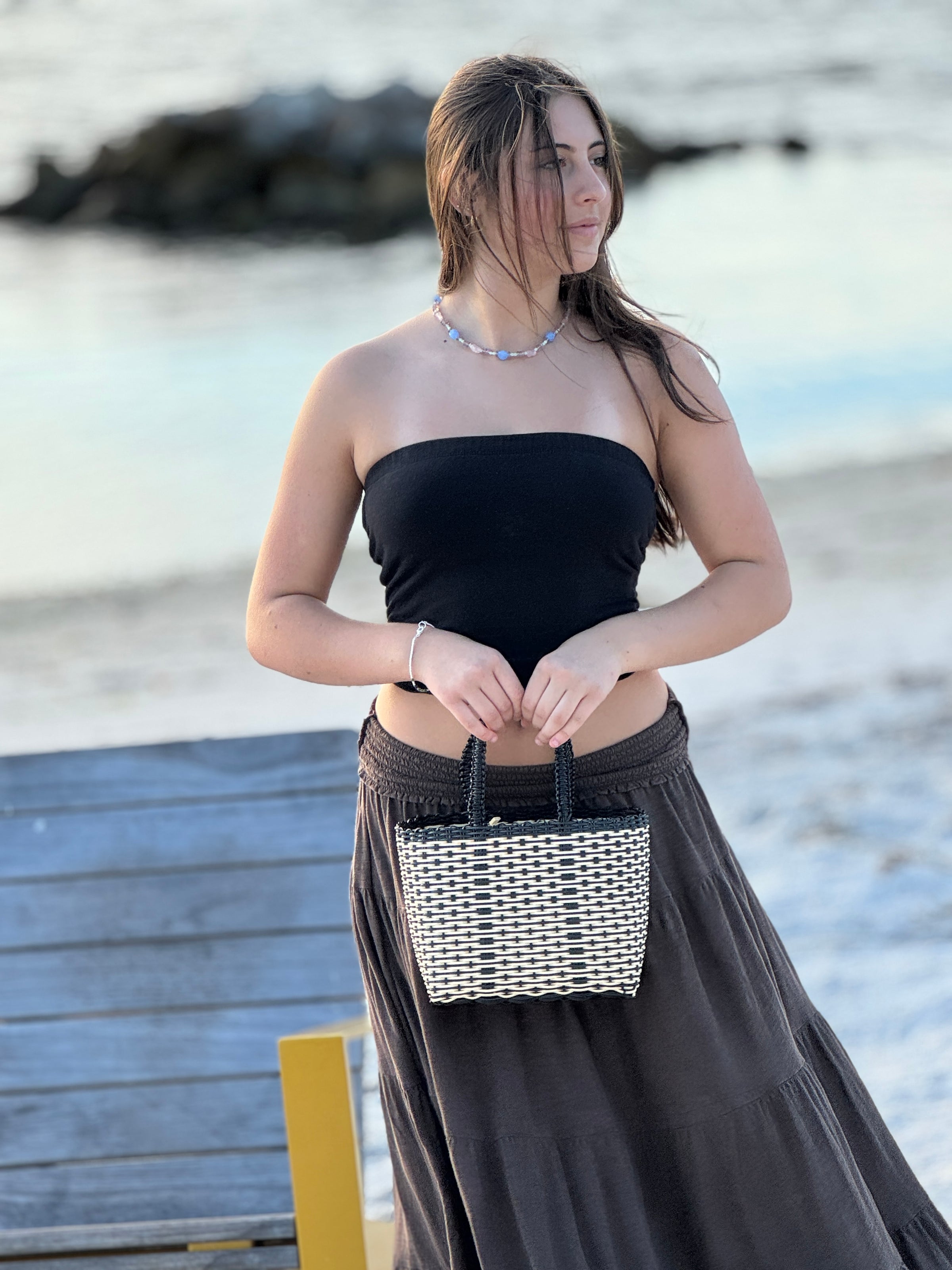 With its statement-making beads and cool choker length this limited edition necklace has a personality that molds to your personal style. It’s as comfortable with your coastal grandma sweater as it is with your ‘90s slip dress. The only question left is: what’s up after the party?