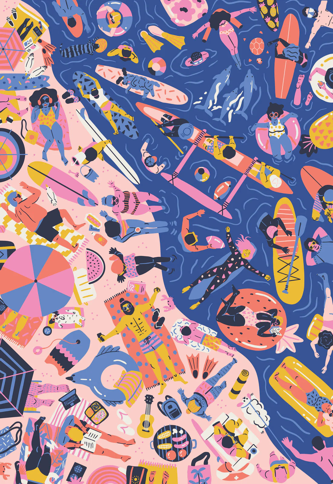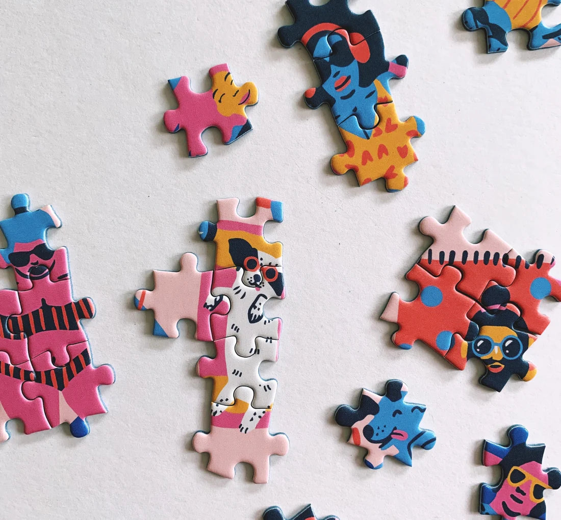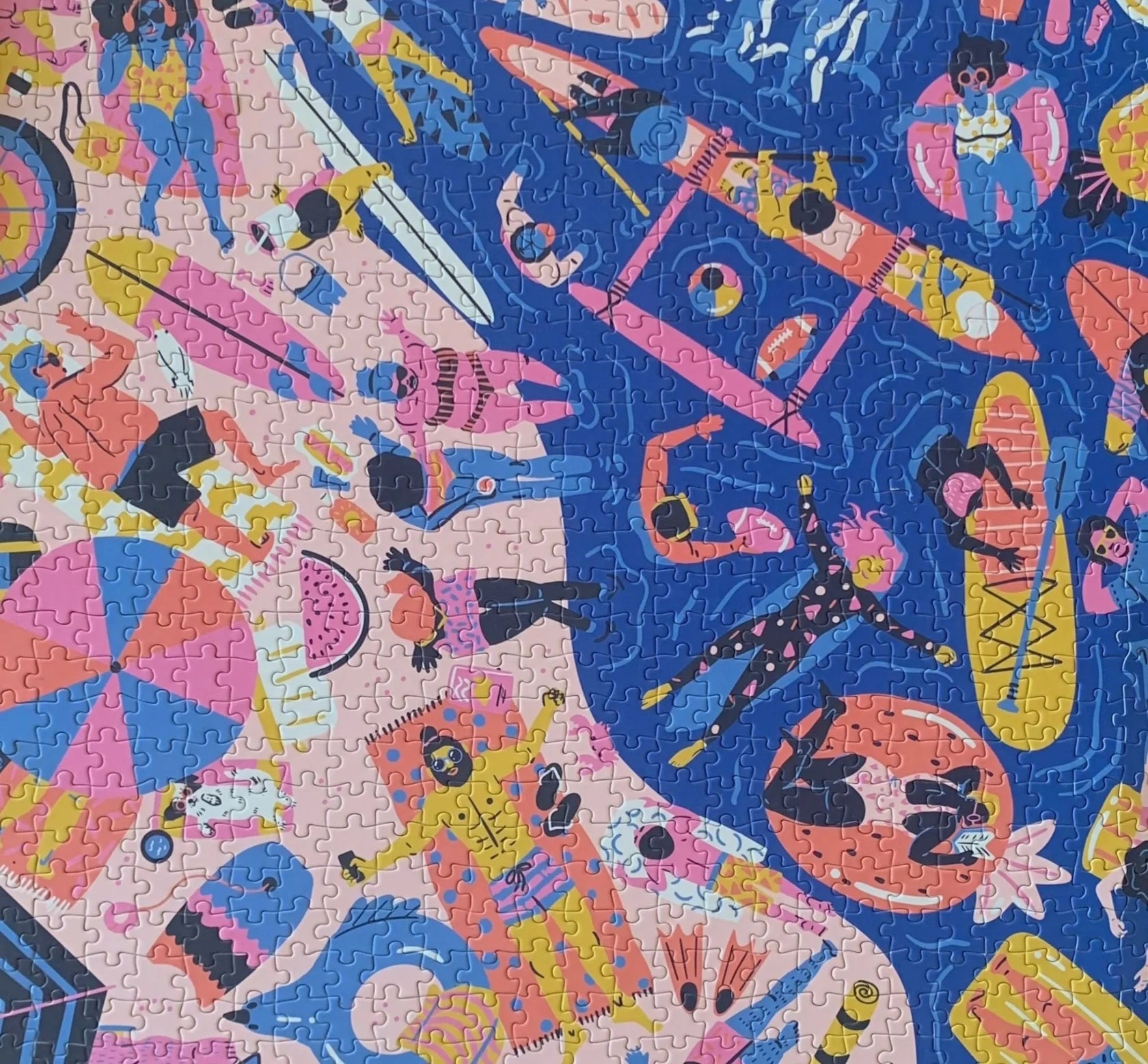 When busy beach days and people watching went hand in hand. *Art by illustrator Kim Sielbeck @kimsielbeck *Size: 1000 pieces *Dimensions: 19.25 x 28 inches *Materials: Puzzle made of premium 100% recycled Eska board & printed with non-toxic inks and a matte finish *Eco-friendly packaging