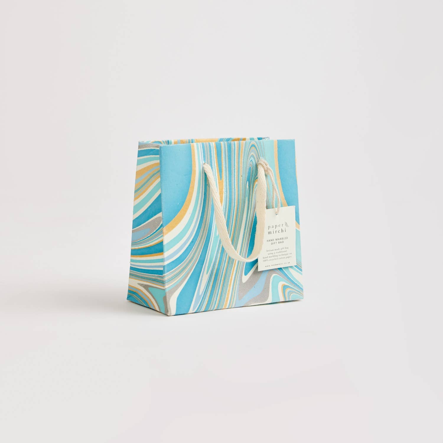 Our hand marbled gift bags are made from a strong 250gsm recycled cotton card paper in colours and designs complementing the gift wrap range.
