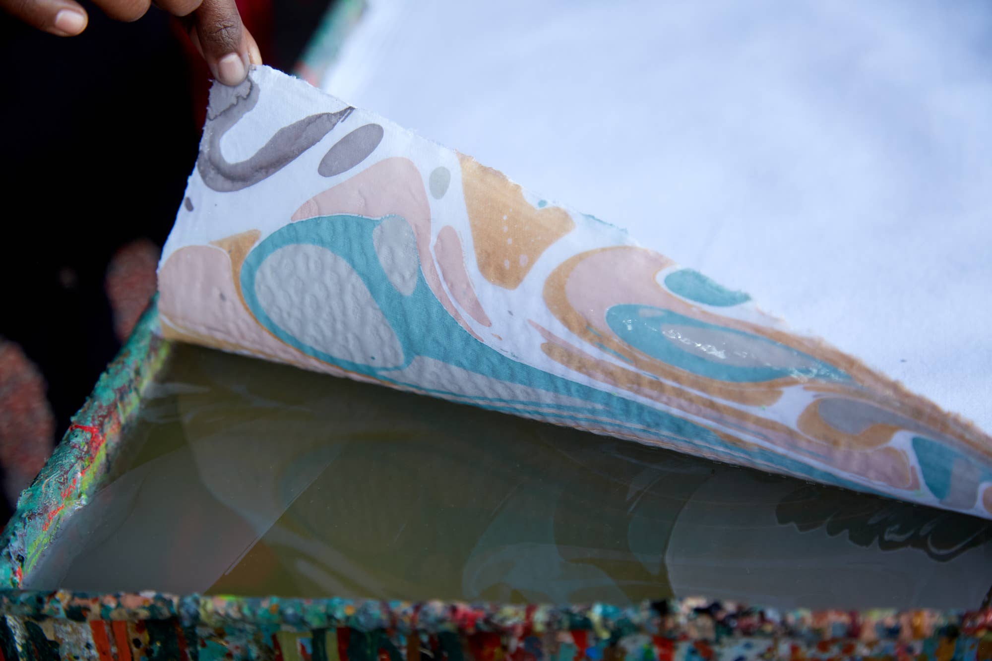 The bags are hand marbled using traditional techniques, and are not digitally mass produced.