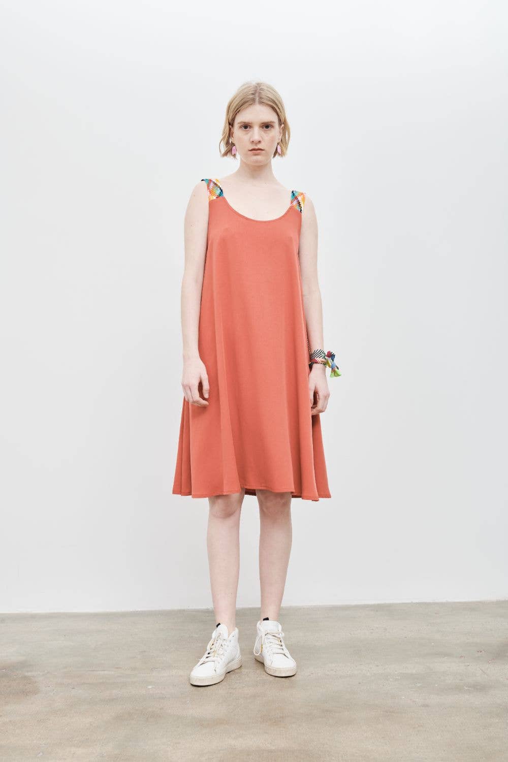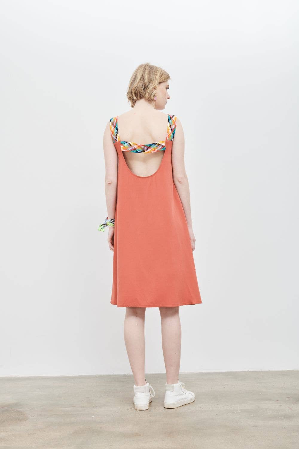 This dress is a very special piece, its light and very loose fabric makes it feel like you're not wearing anything. It can be used for every day or informal outings and can easily be styled with a sandal, heel, wedge or sneaker. Its multicolored ribbon offers multiple possibilities of combination. This garment is designed and made according to Malaerba's philosophy, ethical and local productions. Each dress is designed and produced in Barcelona.