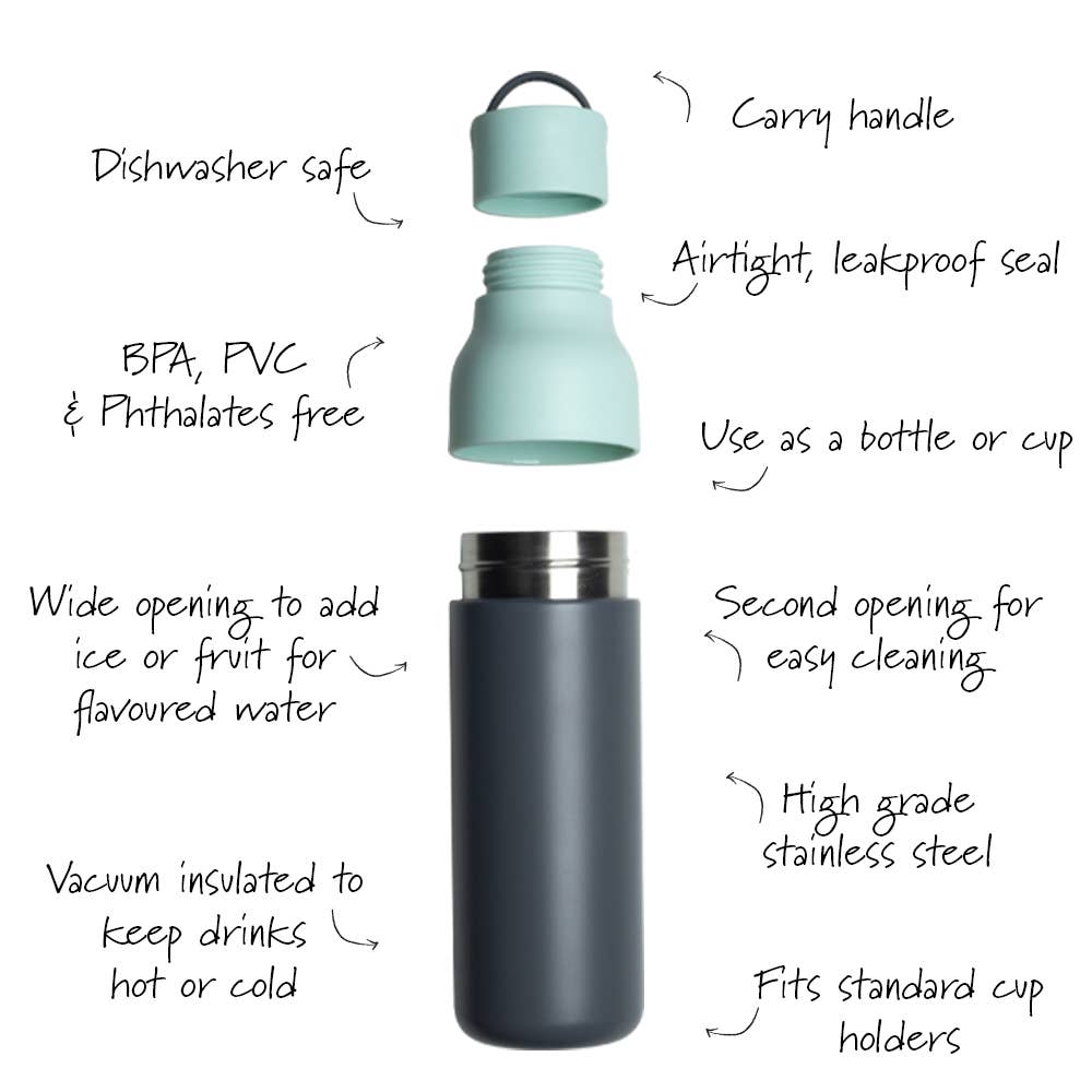 The Lund London grey and mint 500ml active bottle does not only look great, but it is also full of practical features. The double opening makes it easy to clean and versatile to use, and with a built in grab handle, it is easy to pick up and carry. The bottle is vacuum insulted and made of high grade stainless steel. The airtight and leakproof seals on both openings also fit standard ice cubes. As well as being dishwasher safe, this active bottle is also BPA, PVC and Phthalates free.