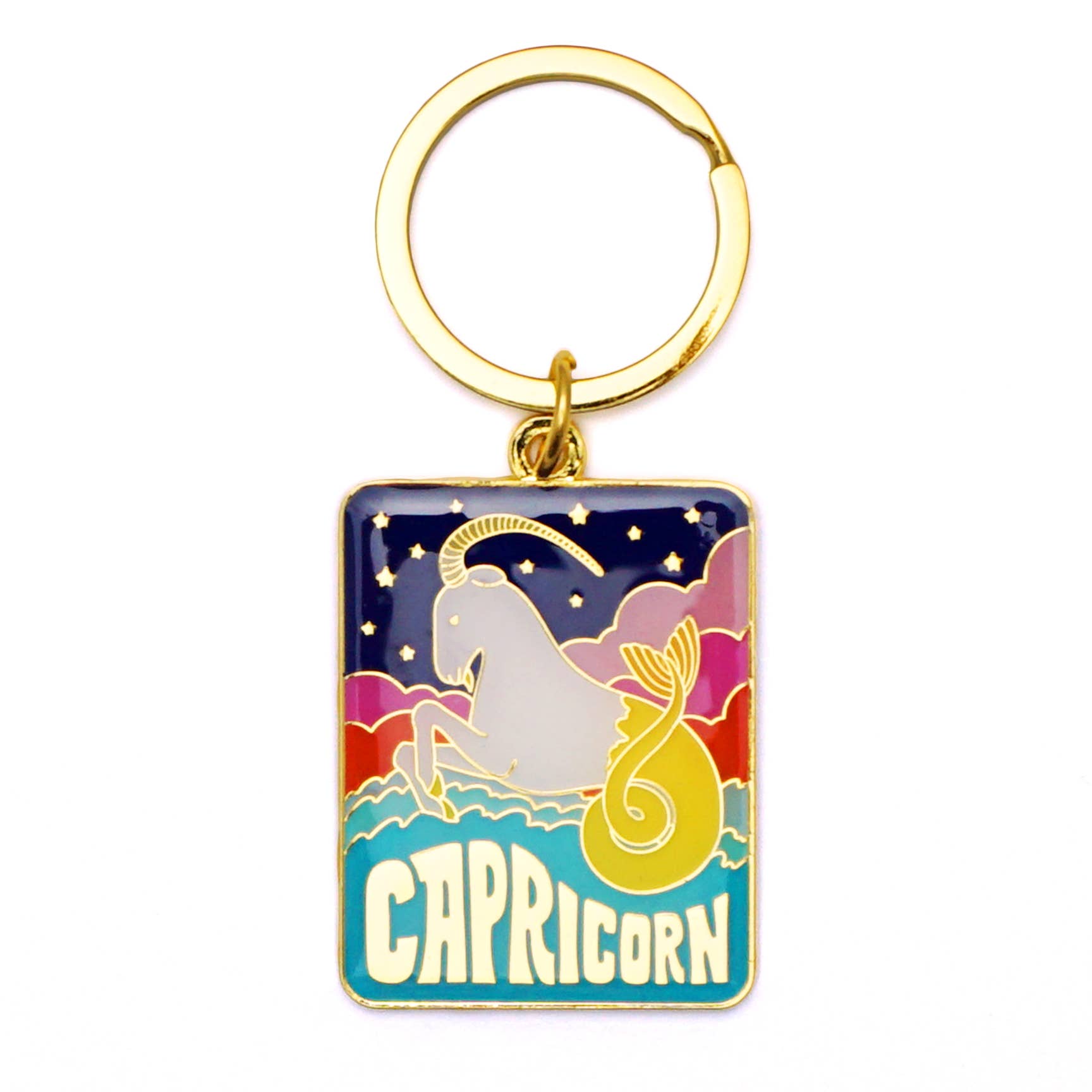 Discover the Lucky Horse Press Capricorn Keychain, an accessory that perfectly blends fashion and functionality. Measuring 1.5" wide and 1.75" long, this enamel charm key ring is meticulously designed. Inspired by music, memories, and irreverent things, designer Michele Lee ensures each piece exudes creativity and color experimentation. This keychain is not just an accessory, but a piece of art that brings general happiness for all. Carry it with you and let your Capricorn charm shine in every corner.