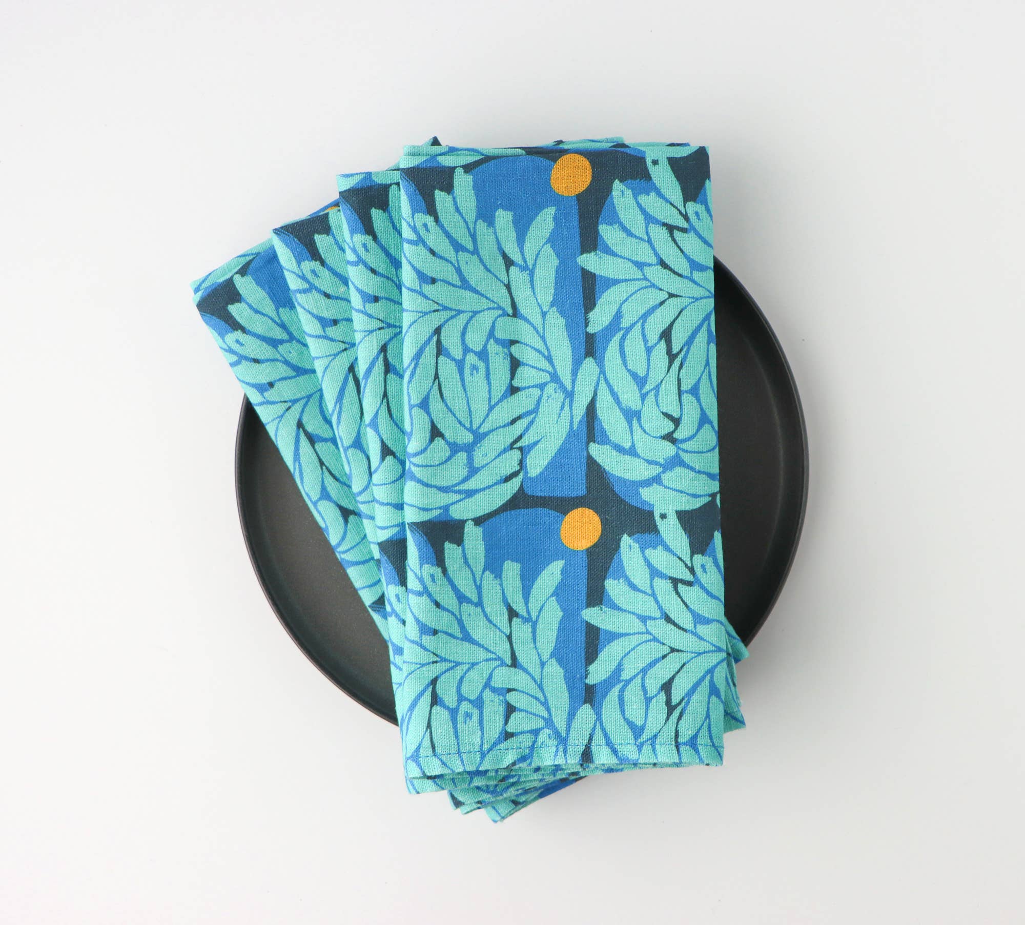 SET OF 4 - Bring art and joy to your table setting with this hand drawn, abstract design napkin set by Leila Simon Hayes. Perfect for casual dining and special occasions. They’re also the perfect housewarming, wedding, birthday, and mother's day gifts. Linen pre-washed 17" x 17" napkin. • 100% European linen. Oeko-TEX standard 100 certified • machine washable