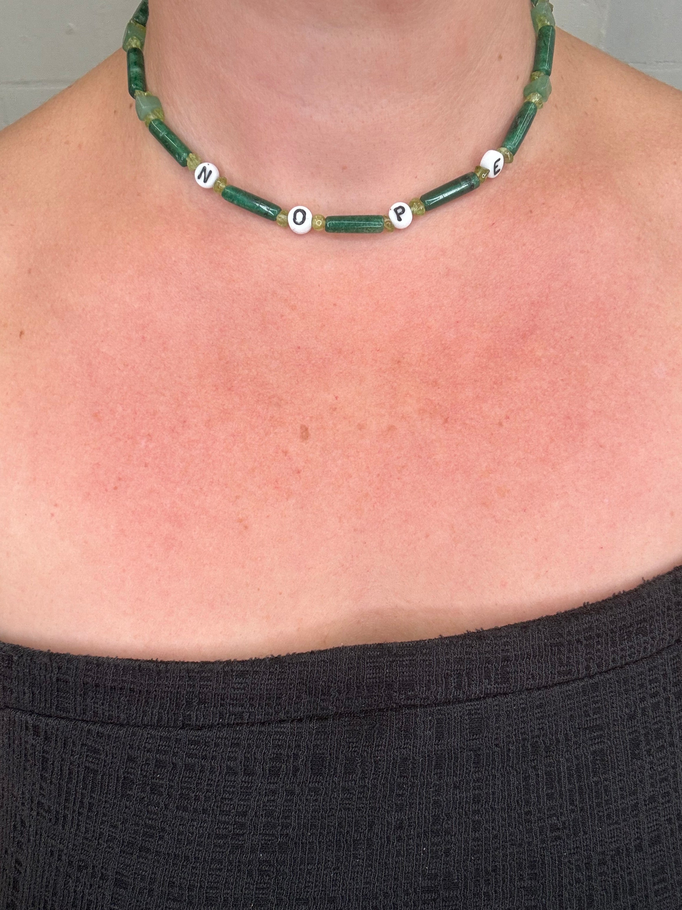 after the party (by rabbit RABBIT) is imagined, designed, and handcrafted by amanda gilliland in Sarasota, Fl. The Nope design is a limited edition of 10 necklaces.