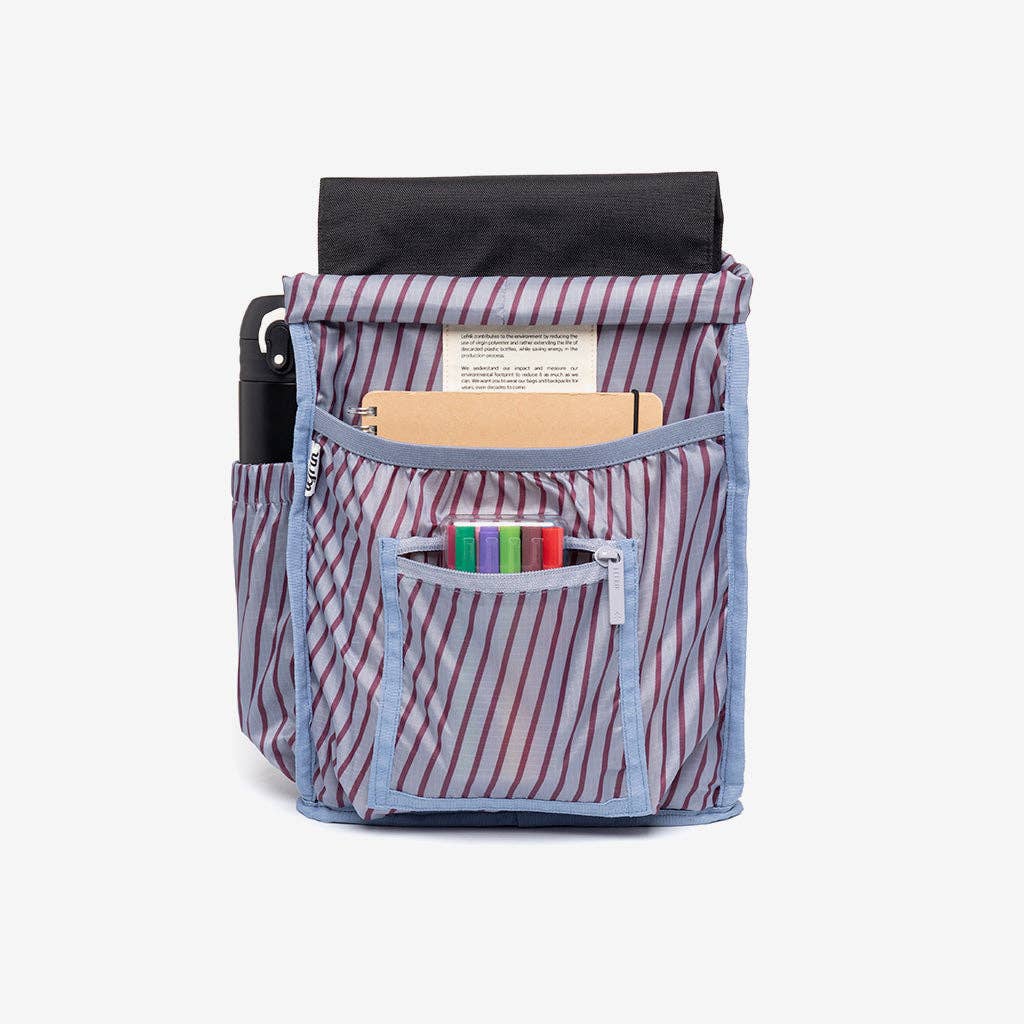Mini version of the iconic "Scout" model. This backpack has the perfect amount of space to carry all your essentials comfortably and safely. With a large main compartment and a separate pocket for notebooks or small electronic devices, it is also perfect as a school bag for the little ones. It features a quick access pocket on the flap, and a security pocket on the back. Lightweight, adjustable cotton handles. Its OXFORD RPET fabric makes it lightweight, water resistant and vegan. Wash cold. Air dry.