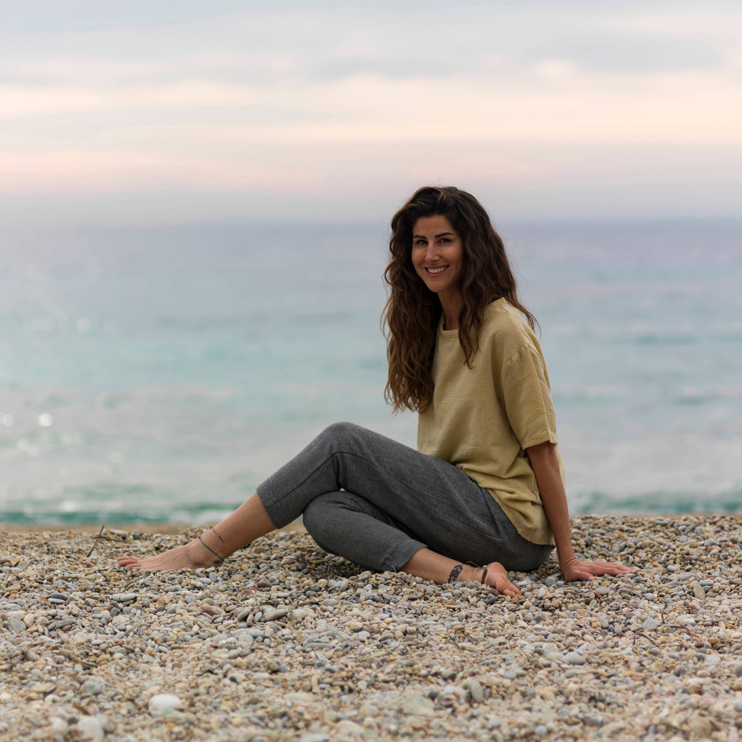 Hand-loomed from organic cotton, washed in the sea, dried on the sand, the fabric of the dress has durability and unique soft texture, letting the gauzy Sile fabric breathe and touch the skin lightly.