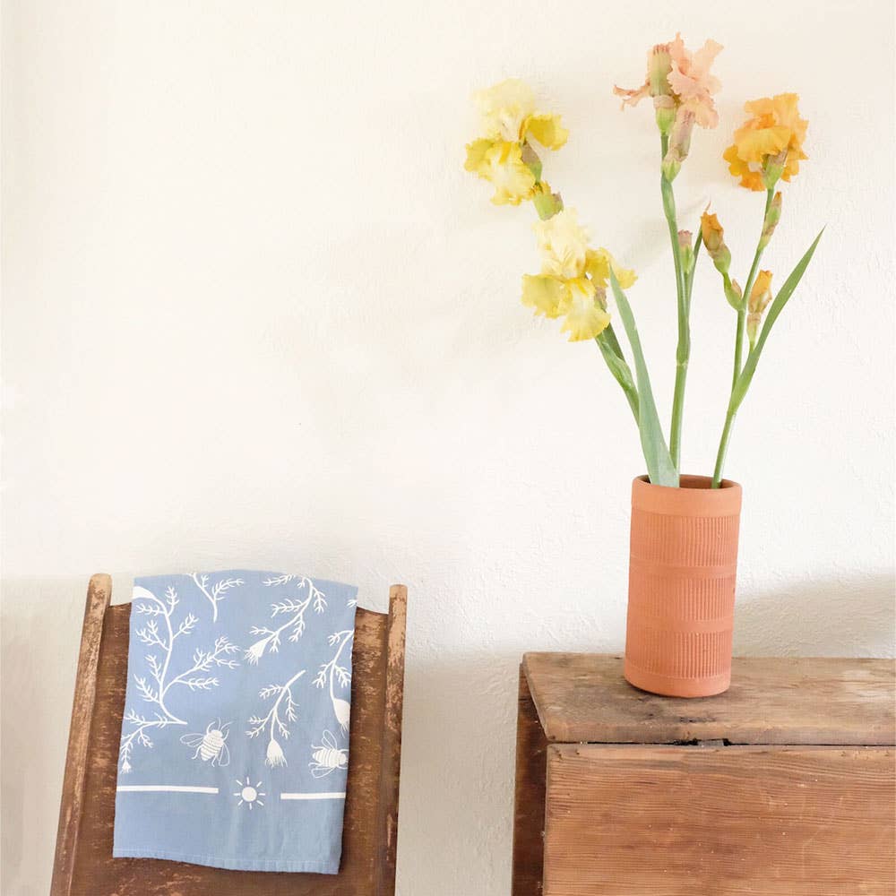 The imagery of the cotton tea towels is inspired by wild and cultivated edible and medicinal plants. These tea towels were created as multifunctional textiles for both inside and outside the kitchen. Made with 100% cotton and screen-printed with water-based ink, they are safe to use around food and make wonderful kitchen cooking companions. I love the many ways that this textile can be used. It makes a lovely gift, whether given on its own or used as wrapping ‘paper.’ It holds small Tupperware and containers well for taking snacks to-go, and doubles as a picnic placemat. Great for covering rising bread dough and wrapping freshly baked loaves. As the material is soft yet sturdy, it can also be used as an altar cloth or hung as a tapestry.-