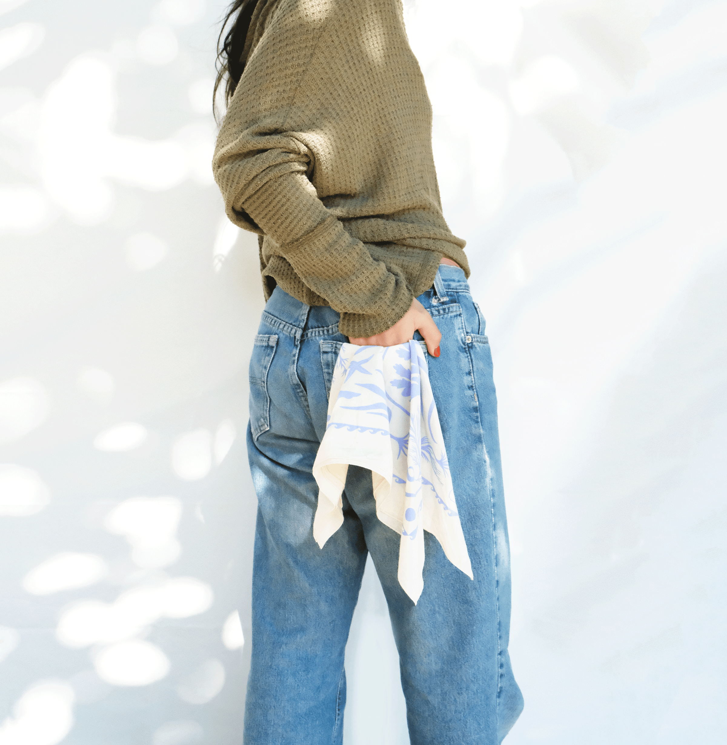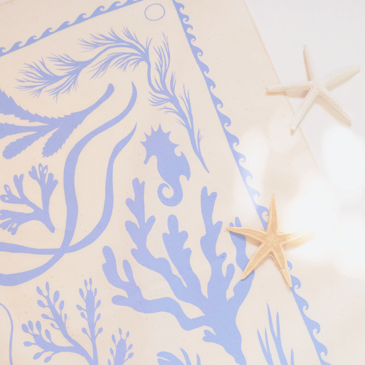 The Tides Bandana honors the power of the moon, the changing of the tides, and the seaweeds and small creatures that inhabit coastal tidepools. Bandanas are incredibly versatile and have been worn and used functionally for generations by sailors and seafarers, farmers, cowboys, babushkas, and more. I create these bandanas to continue a tradition of functional fabric that features a variety of colors, landscapes, and details. These bandanas are meant to be keepsakes, companions for everyday life and adventures.