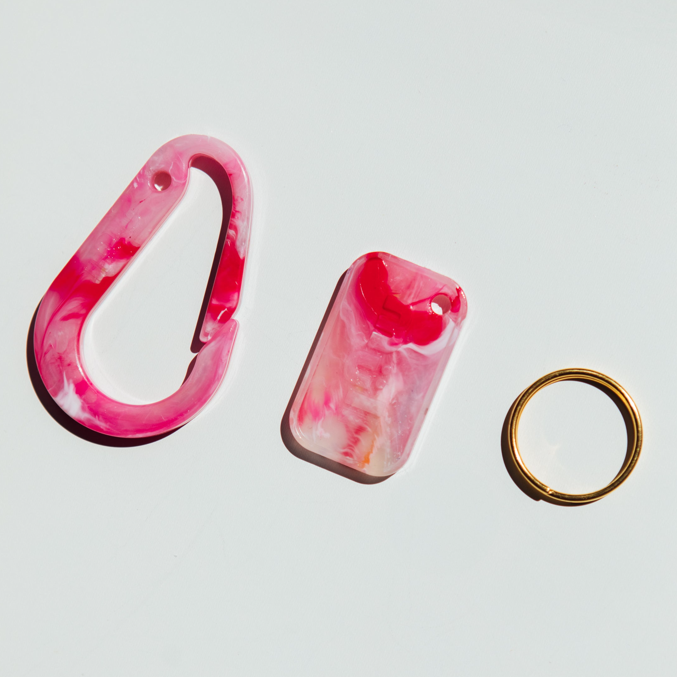 Crafted from 100% household plastic waste, each carabiner is not only an eco-friendly choice but a statement of sustainability and innovation. Crafted predominantly from Vanish tubs and scoops, the Van'ish Blend bursts with a vibrant, bold pink hue that’s both striking and unique. The intricate patterns created through the recycling process add a touch of whimsy and flair, making each piece a true standout. Whether you’re looking to add a pop of color to your everyday essentials or make a bold statement, the Van'ish Blend is designed to turn heads and spark conversation.