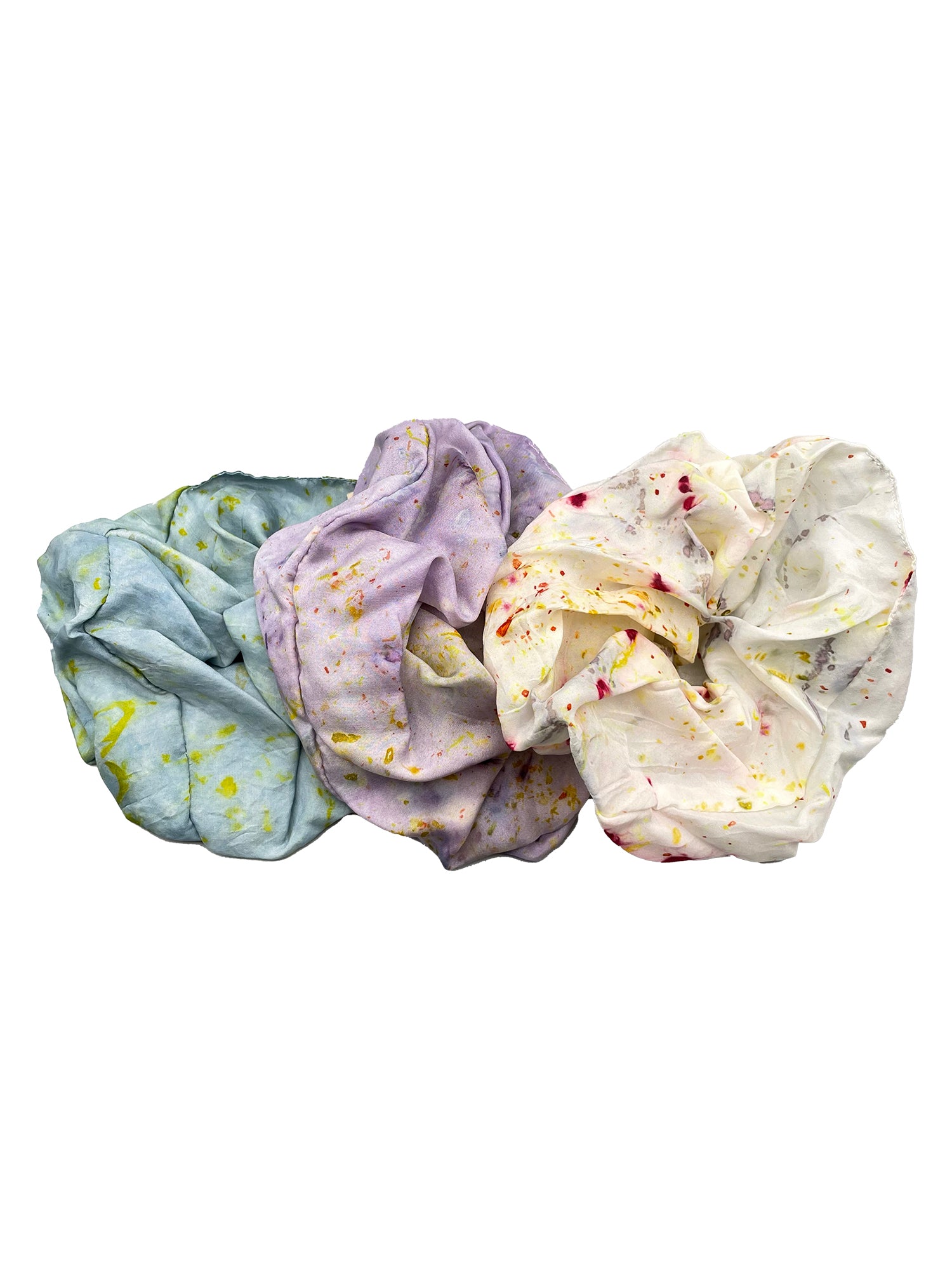 These silk scrunchies were dyed with a variety of plants & flowers.